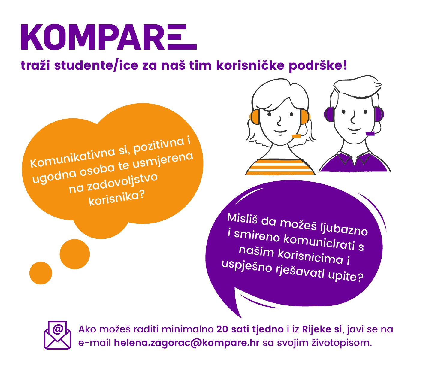 Kompare.hr traži osobe na poziciji Kompareovka u korisničkoj podršci (m/ž) - studenti.